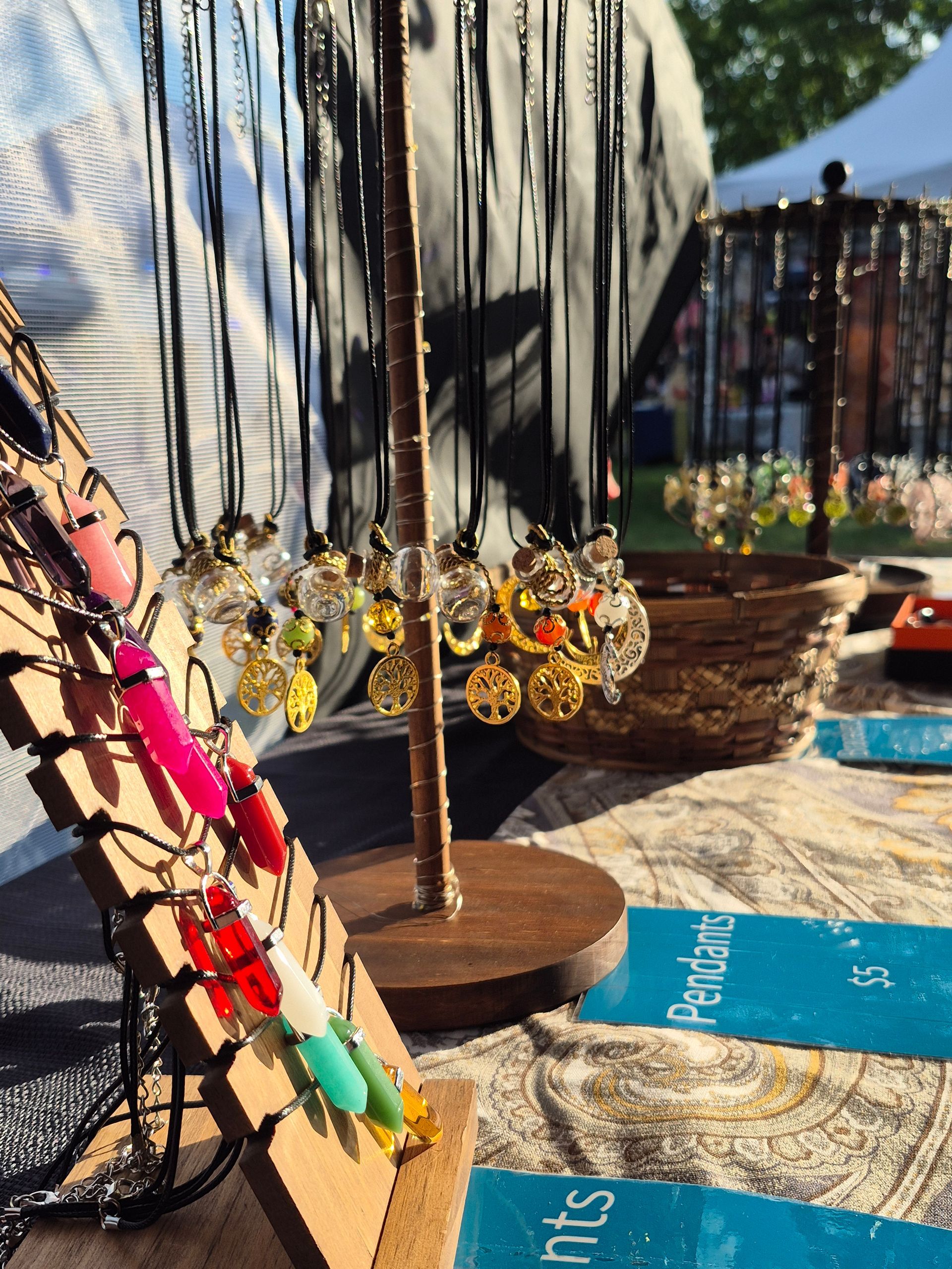 Rooted in the spirit of freedom, creativity, and connection, our shop exists both online and on the road—popping up at music festivals, art fairs, and gatherings. Whether you're building a sacred space, decorating your festival tent, or looking for a meaningful talisman to wear, every item is crafted or curated to spark joy, healing, and high-vibe energy.