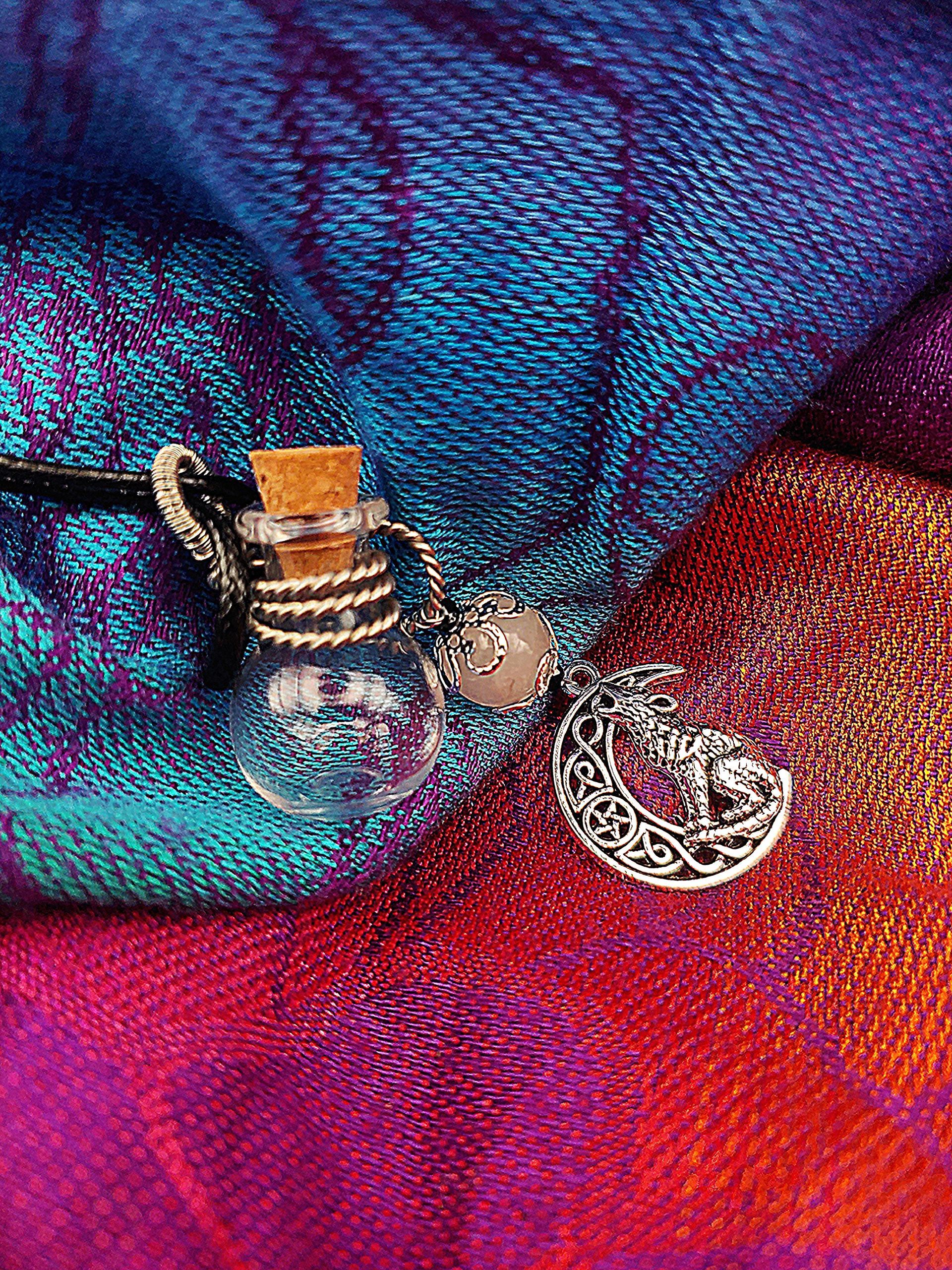 - Hand-wrapped gemstone jewelry, spell jar pendants, and totem charms for grounded magic
