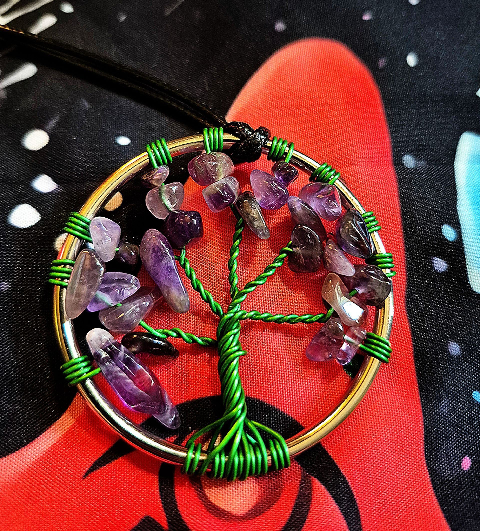 A stunning Tree of Life pendant handcrafted with intricate wire branches and gemstone “leaves,” symbolizing growth, strength, and connection. Each pendant features carefully chosen stones forming the leaves, available in citrine, amethyst, obsidian, or tiger’s eye, allowing each piece to carry its own unique energy and character. The tree’s branches spread gracefully within a circular frame, while the polished stones add natural color, texture, and depth. Whether worn for its meaning or its beauty, this pendant blends timeless symbolism with the grounding elegance of natural gemstones, making it a meaningful accessory or thoughtful gift.